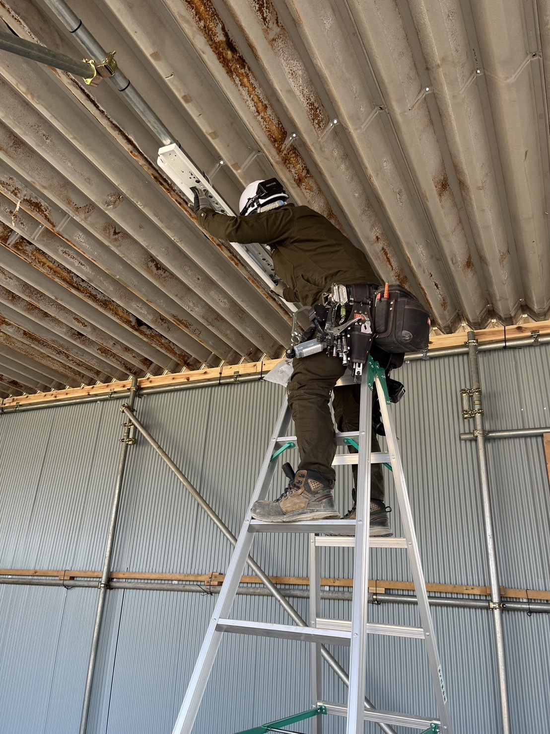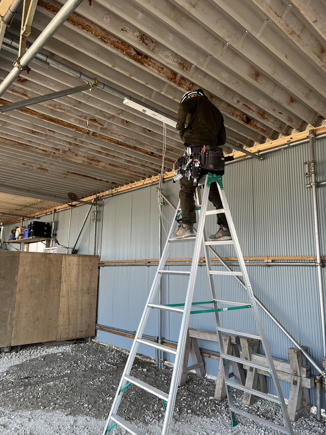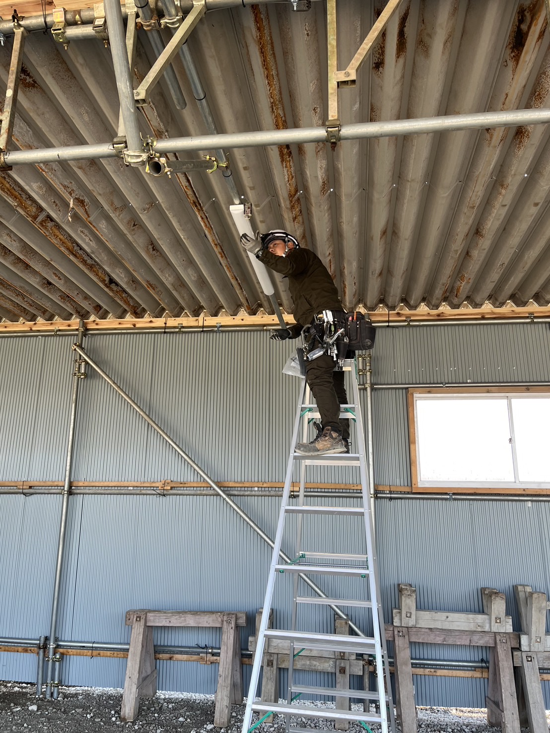 茨城県桜川市にて、車庫内配線・照明器具取り付けを行ないましたのでその様子をご紹介します。